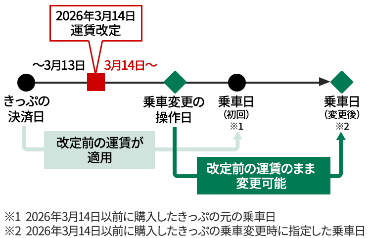 JR東日本では、2026年3月14日(土)に運賃改定を実施いたします。「えきねっと」でお申込みいただいたきっぷの変更のお取扱いにつきましては、以下の詳細をご確認ください。